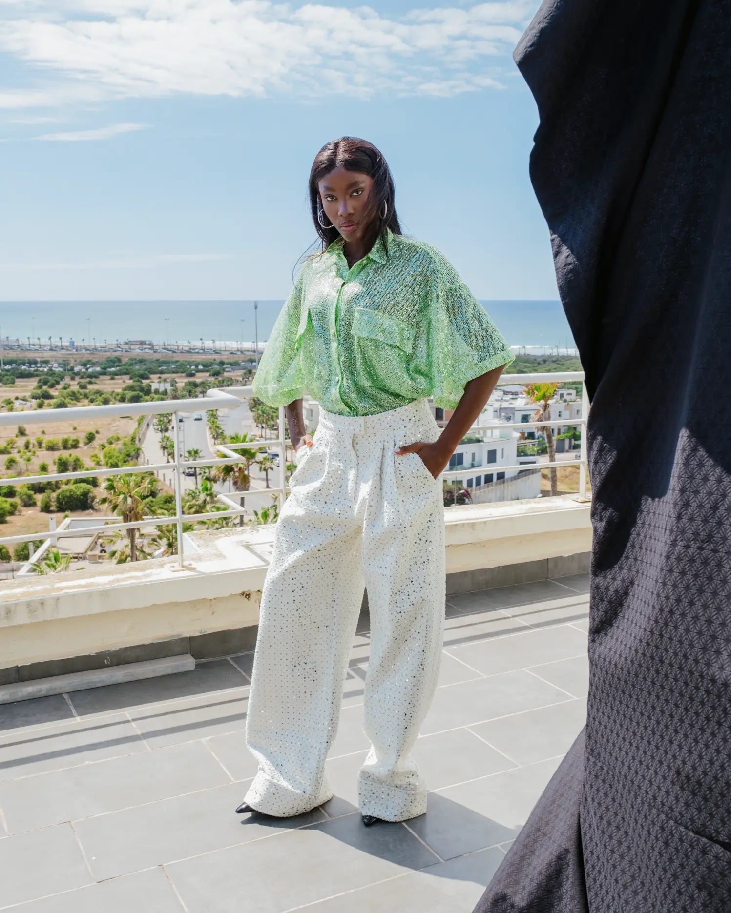 Jeans Blanc oversize avec paillettes argentées.