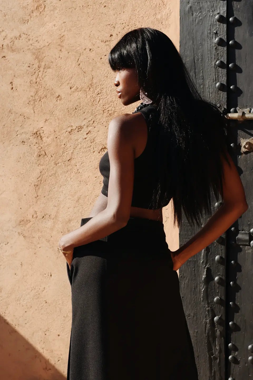 Jupe tailleur en viscose stretch, tissu Valentino, avec fentes latérales.