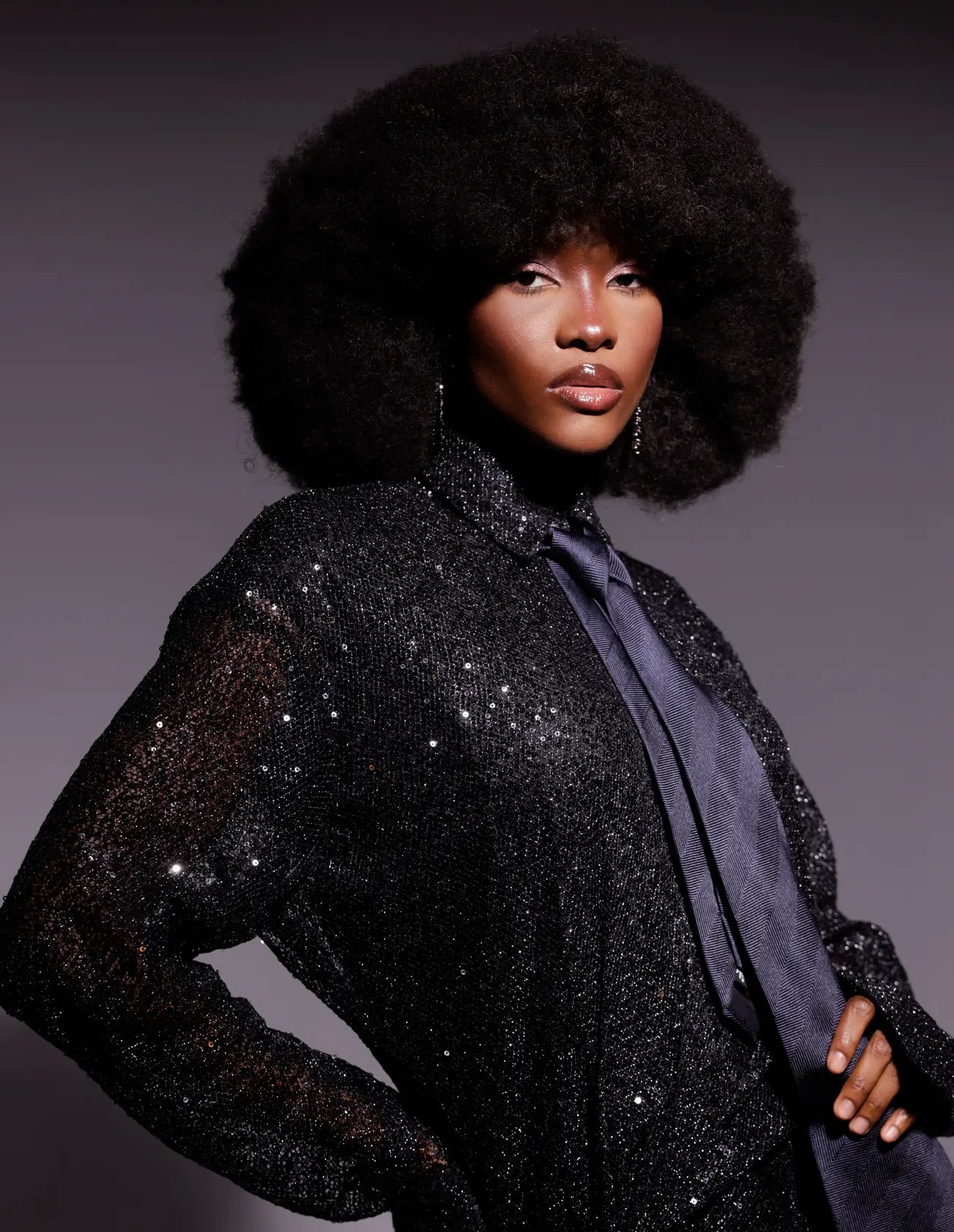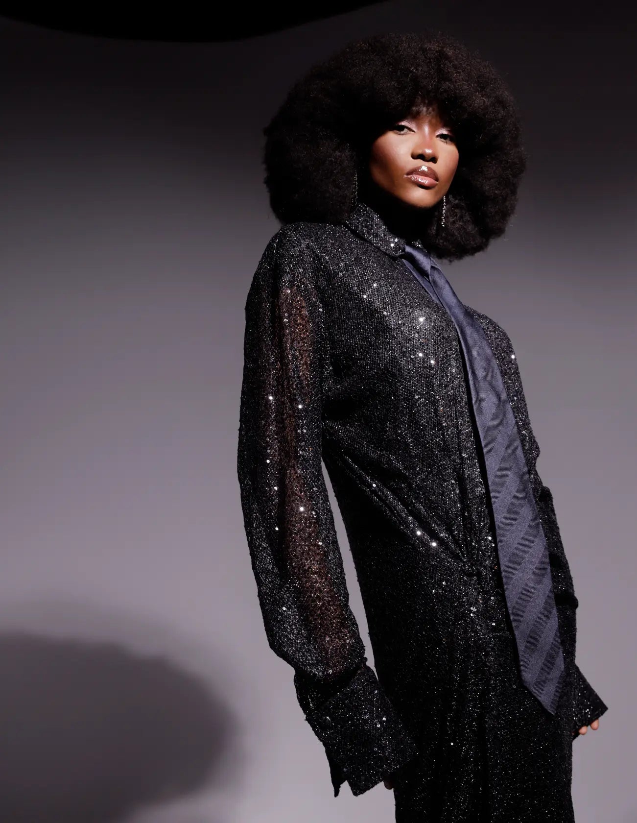 Tissu petites paillettes noires.