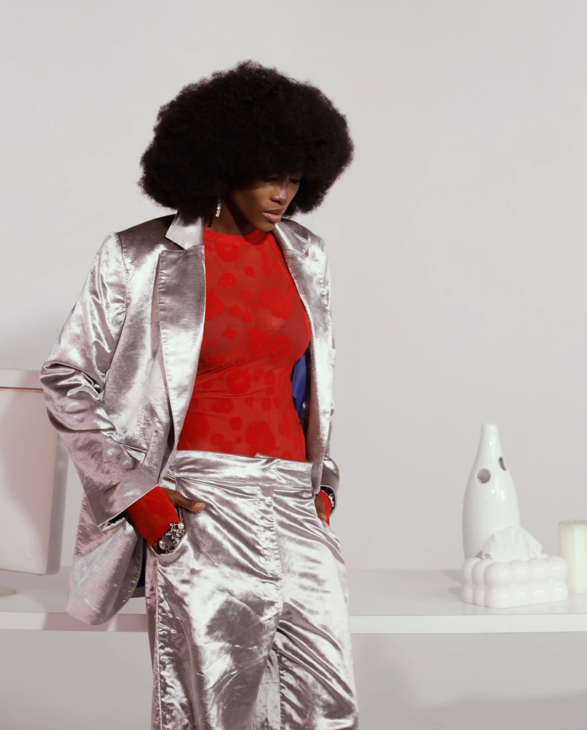 Haut en tulle stretch avec des fleurs en relief en velours.